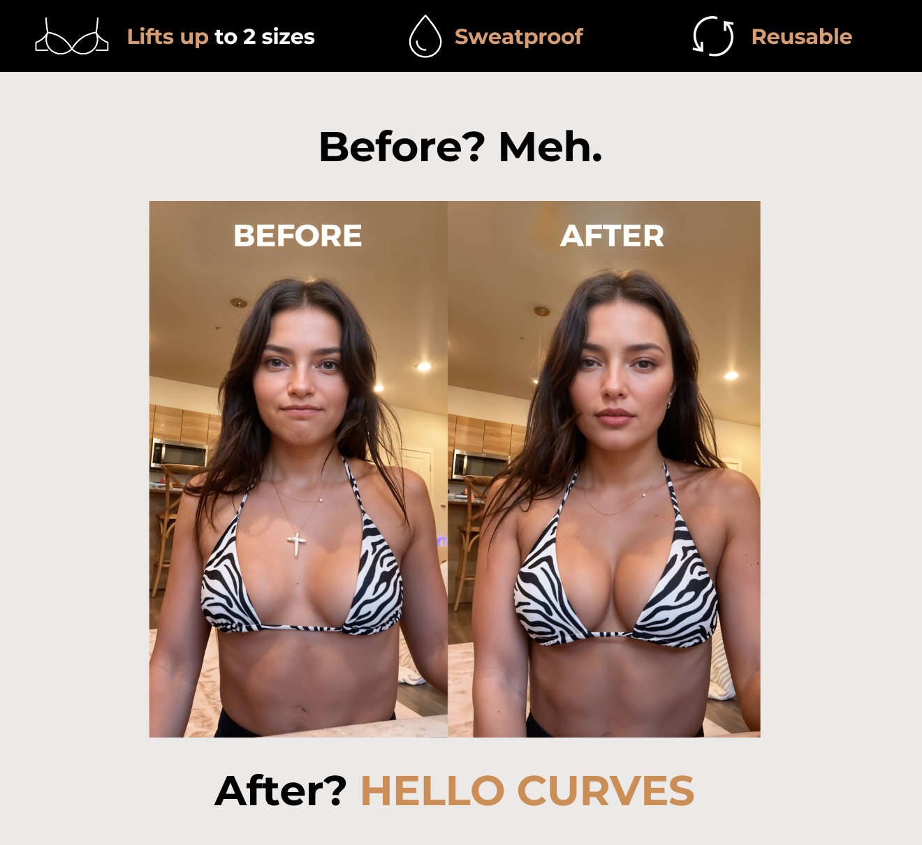 "Reusable, sweat-proof, water-proof, sticky inserts that gives you an instant bombshell look."